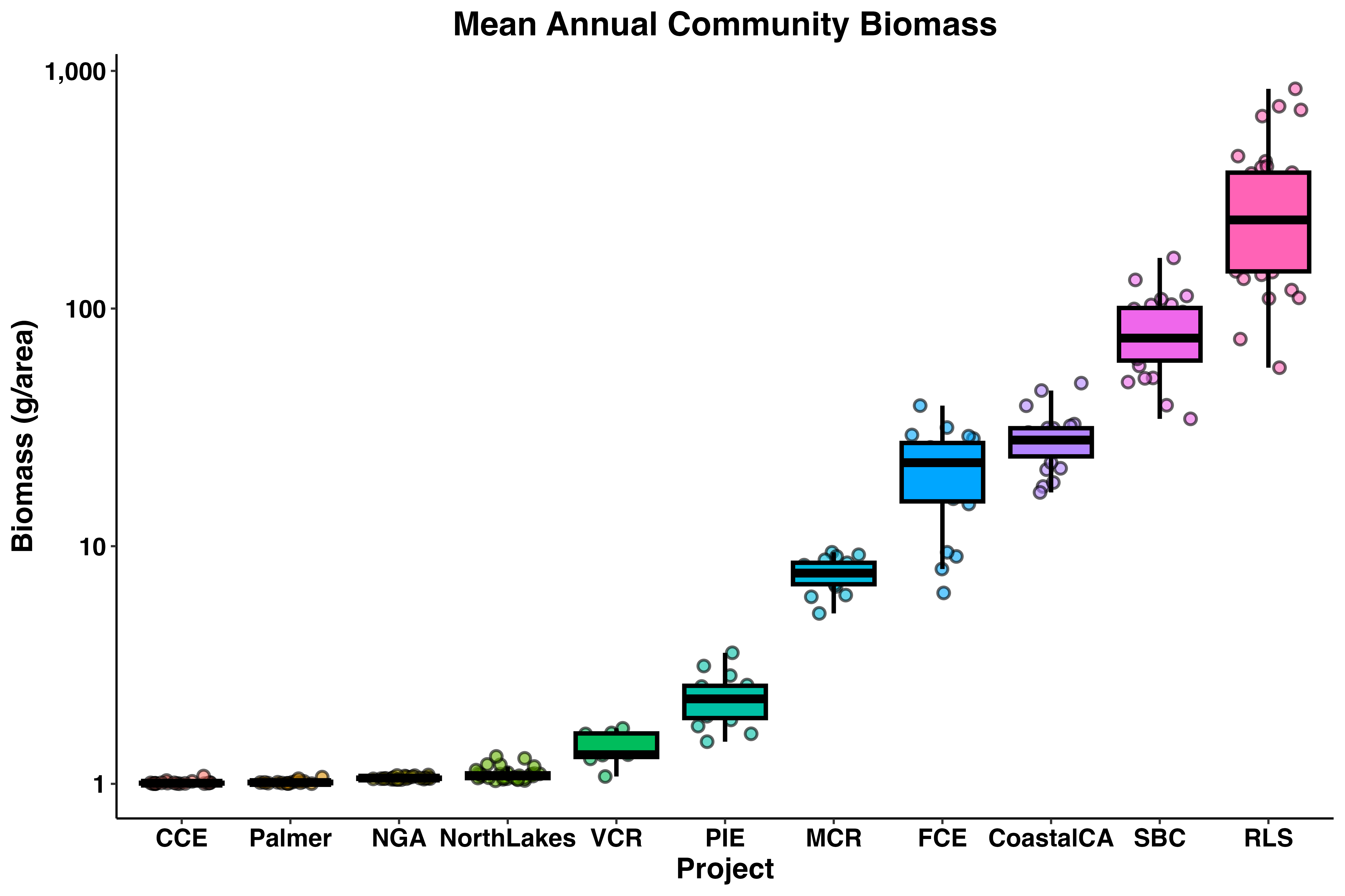 labs(x = 'Project', y = 'Biomass (g/area)',