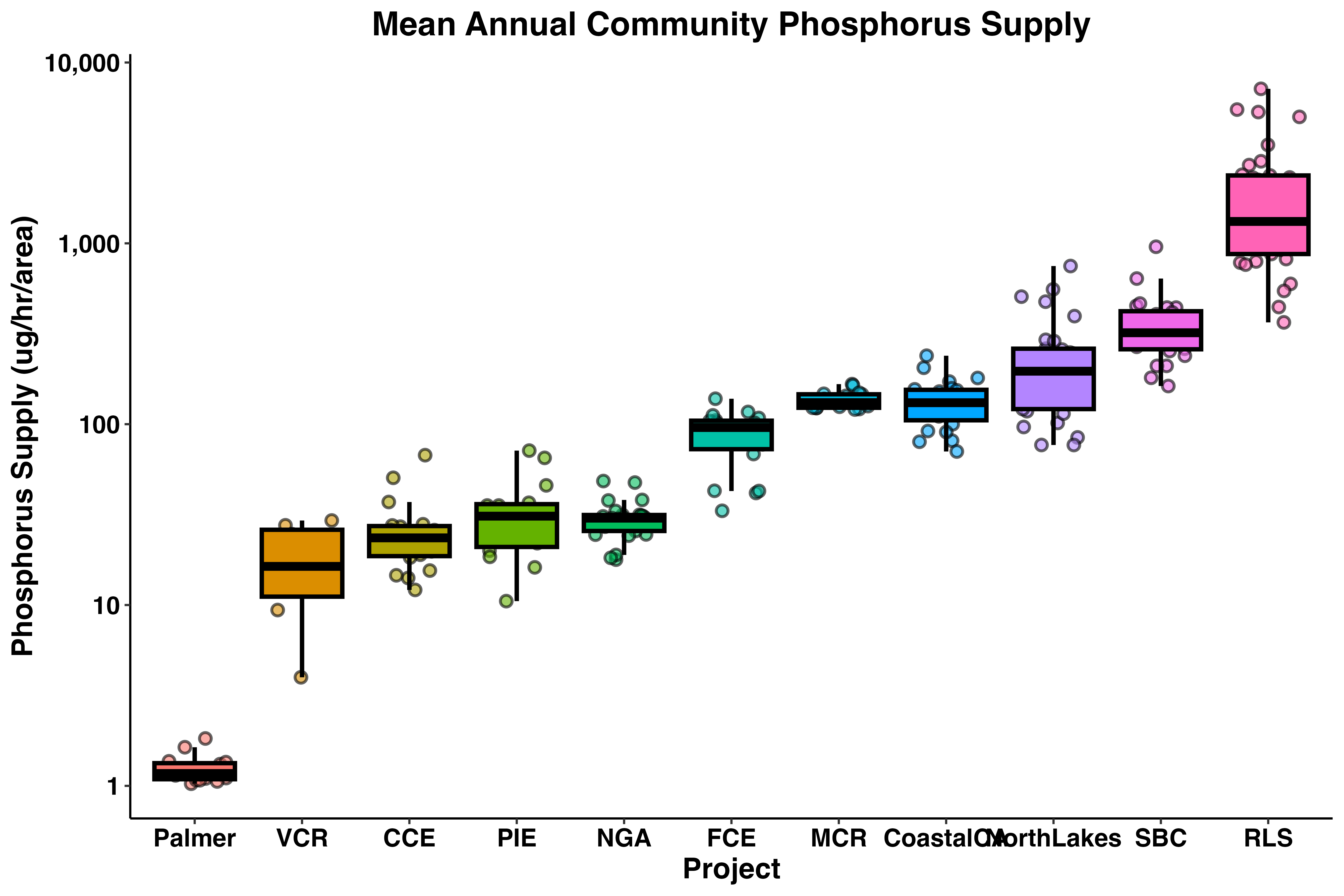 labs(x = 'Project', y = 'Phosphorus Supply (ug/hr/area)',